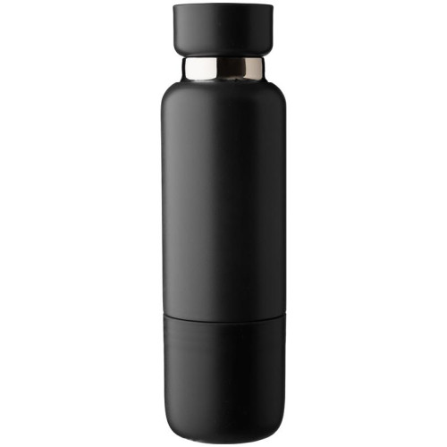 Vakuumirana dvoslojna boca za piće od nehrđajućeg čelika (500 ml) s PP čašicom za piće (300 ml) na dnu. Unutrašnjost je od nehrđajućeg čelika 304, izvana od nehrđajućeg čelika 201. PP poklopac s AS prozirnim zatvaranjem, s poliesterskom uzicom za ručni zglob i remenom za nošenje. Mat boje. Pojedinačno pakirano u smeđu kartonsku kutiju.