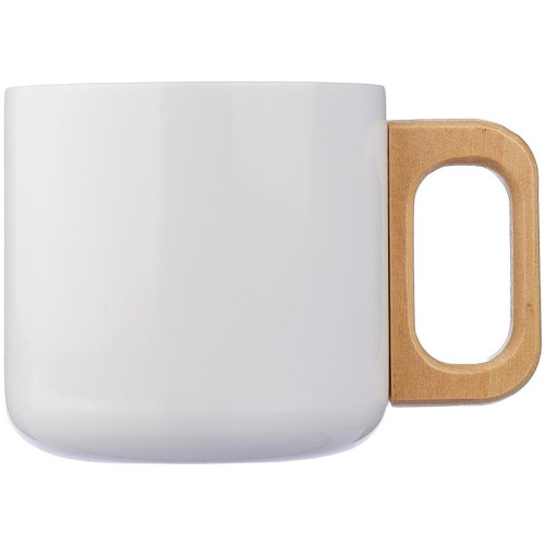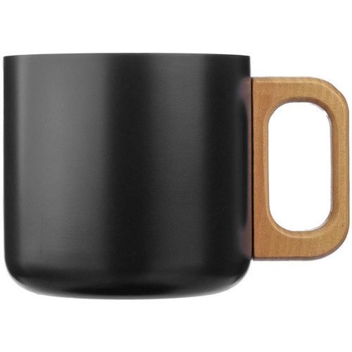 Šalica s dvostrukim stijenkama od recikliranog nehrđajućeg čelika (400 ml) s drvenom ručkom. Nije prikladno za pranje u perilici posuđa. Uključuje ugravirani logo od recikliranog nehrđajućeg čelika. Pojedinačno pakirano u smeđu kartonsku kutiju.