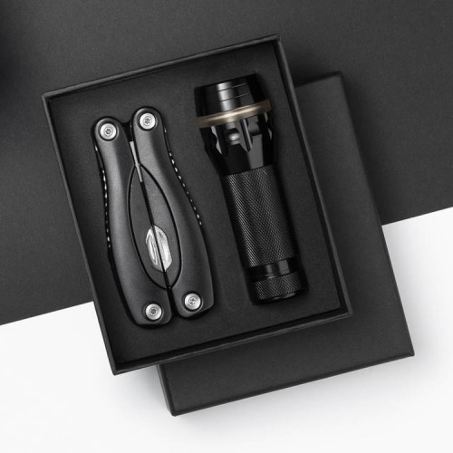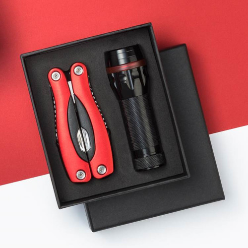 Colorado II je praktičan set koji sadrži svjetiljku i veliki višenamenski alat. Svjetiljka je izrađena od aluminija i emitira fokusirano svjetlo. Profesionalni i praktični višenamjenski alat opremljen je profesionalnim opružnim sustavom i funkcijom Safe koja sprječava slučajno zatvaranje oštrica. Set je upakiran u elegantnu kutiju.