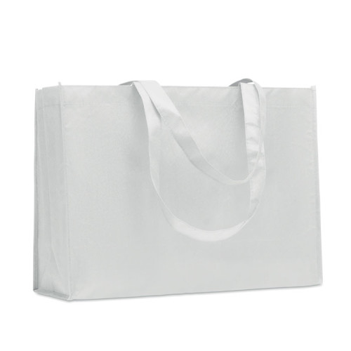Shopping or beach bag in RPET non-woven with gussets and long handles. 80 gr/m².