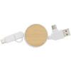 ABS produljivi kabel za punjenje s detaljima od bambusa. S USB-C, Lightning i USB-A. Pojedinačno pakirano u smeđu kartonsku vrećicu.