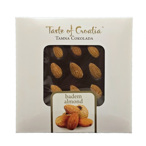 - Badem – tamna čokolada s cijelim bademima. Klasična poslastica za sve ljubitelje čokolade. Težina: 90 g