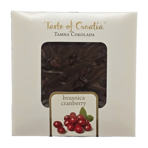 - Brusnica – tamna čokolada s cijelim brusnicama, savršena kombinacija slatkoće, blage kiselosti i bogatog okusa tamne čokolade. Težina: 90 g