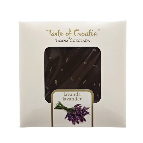 - Lavanda – nježni okus kakaa u vrhunskoj tamnoj čokoladi upotpunjen je mirisnom aromom lavande. Težina: 90 g