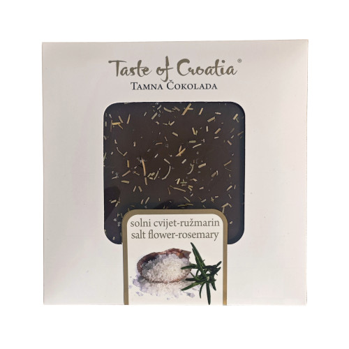 - Solni cvijet i ružmarin – tamna čokolada koja iznenađuje okusne pupoljke. Solni cvijet pojačava okus tamne čokolade, a ružmarin stvara pravu eksploziju okusa u ustima. Težina: 90 g