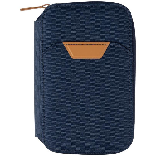 Putni novčanik s PU detaljima i patentnim zatvaračem. RFID zaštita unutra. Uključuje držač za mobilni telefon i više pretinaca, uključujući mali prednji džep. Pojedinačno pakirano u smeđu kartonsku kutiju.