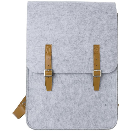 Ruksak od filca RPET s PU detaljima. Jedan veliki i jedan manji džep na prednjoj strani. Torba se zatvara s dvije kopče.