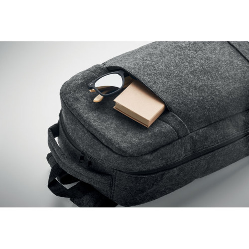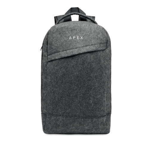 Ruksak za prijenosno računalo od 13” . Izrađen je od RPET filca s podstavljenim naramenicama, remenom s glavnim unutarnjim pretincem te remenom za kolica na stražnjoj strani. Unutrašnji pretinac ima patentni zatvarač.