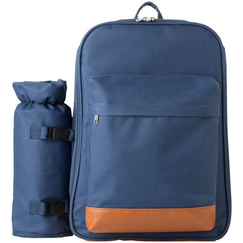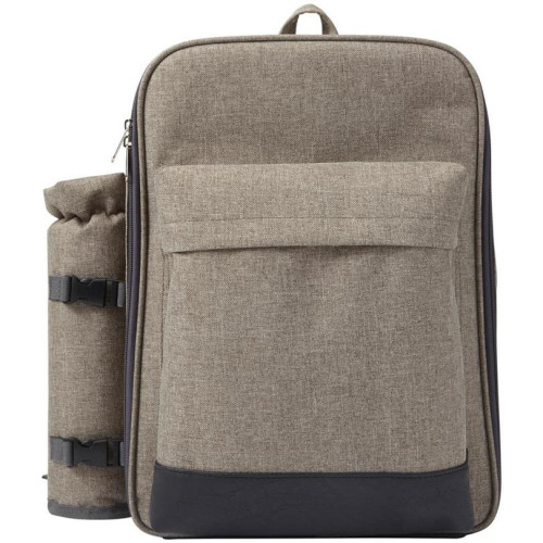 Ruksak za piknik od poliestera (600D) s plastičnim priborom za jelo za četiri osobe i velikim pretincem za hlađenje. S dodatnim držačem za boce i setom posuda za sol i papar.